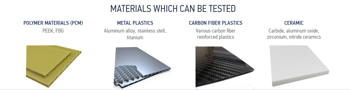 - disbonds at a great depth of metal alloys, coal plastics, glassfiber laminates, metal sheets;