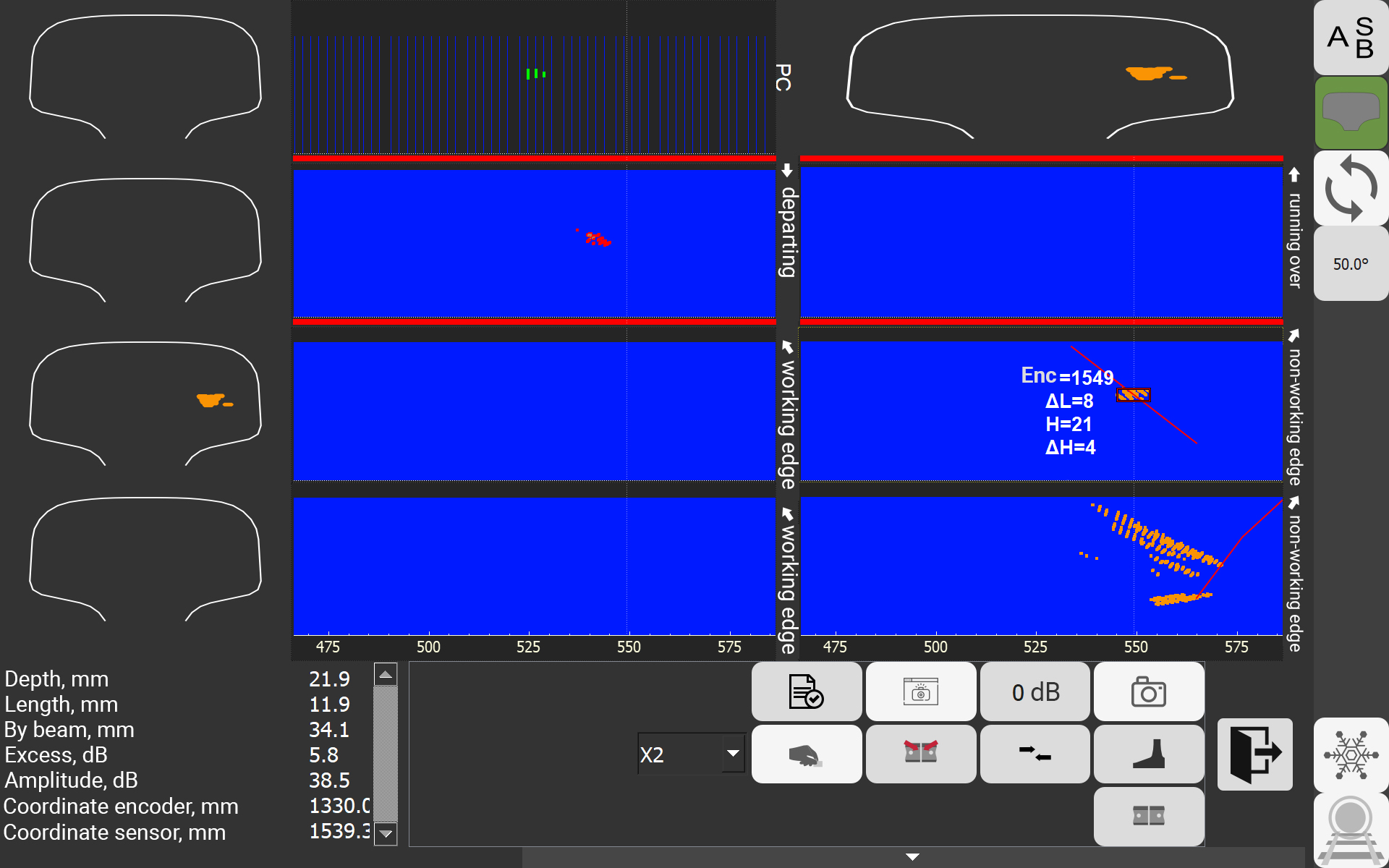 - identification of complex defects under delaminations during continuous testing of the rail thread;