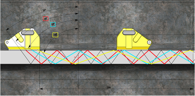 Schematic representation of the path of individual rays when inspecting welded joints