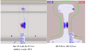 In real time, a B scan can be seen on the flaw detector screen as a rail contour with defect parameters: coordinates, location in the weld section, conventional dimensions, detectability coefficient. Detailed analysis of all signals is available in A and S scans.