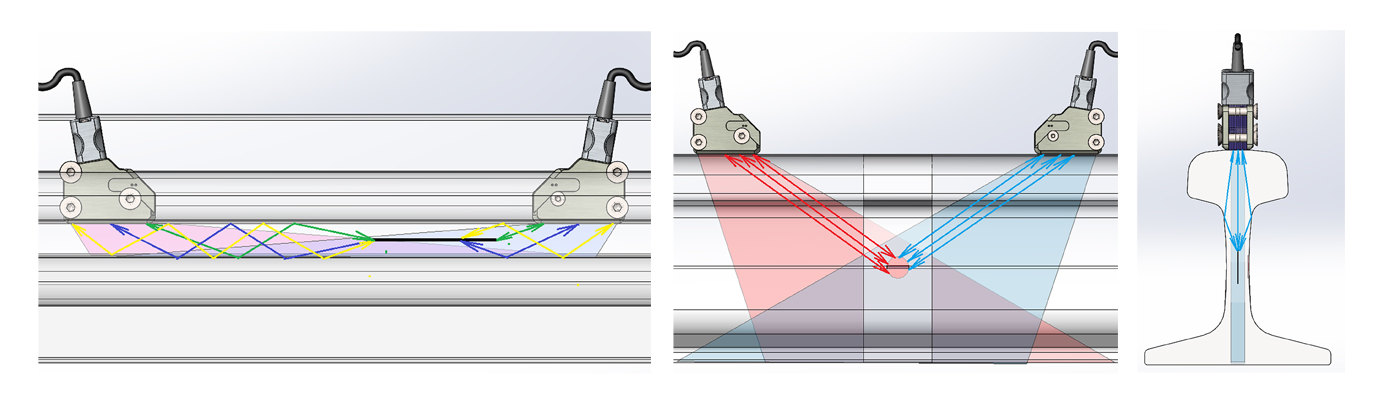 The inspection of welded joints is conducted while scanning using mechanized method, which involves the transverse movement of transducers along the weld from one rail bottom to the other, as well as the longitudinal movement of transducers along the rail surface on both sides of the weld axis over a defined distance.