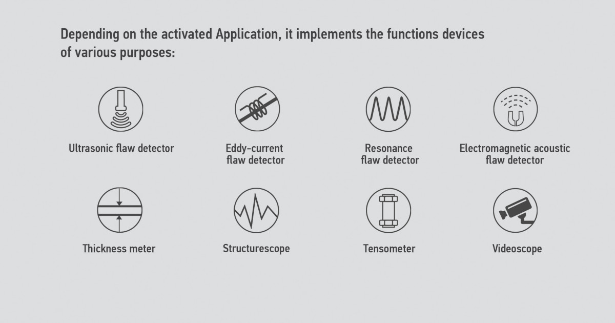 MULTIFUNCTIONAL FLAW DETECTOR TOMOGRAPH Has built-in support for multidisciplinary scanners: tomographic, optical, railway purpose, etc. Such functionality is in demand by NDT laboratories for the control of welded joints, fitting pipe, various metal structures and composite materials.