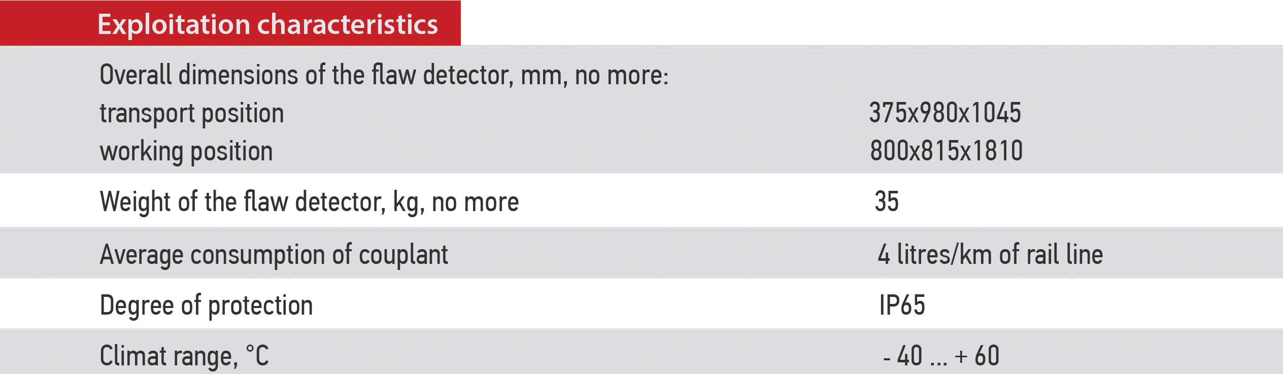 DUBLE-CUT RAIL ULTRASONIC PHASED ARRAY FLAW DETECTOR (PA) Double-line ultrasonic rail flaw detector on phased arrays (PAUT) for continuous ultrasonic testing of all types rail threads (R50, R65, R75, UIC52, UIC60, etc.) along the entire length and cross-section; rails turnouts with semi-automatic decoding of defects, including testing of rail base blades.