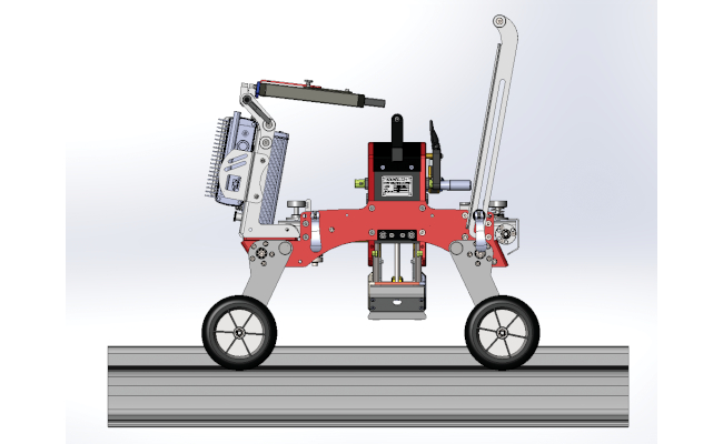 KALMAR 32+ is a mechanical scanner with pre-installed phased array transducers, a flaw detection unit and a PC control tablet. All control functions are performed by the operator.The scanner is installed in the center of the weld joint. Using a mechanized drive, the transducers with phased arrays move along the generatrix of the weld along the entire rail cross-section (head, web, and rail base blades). The flaw detector software includes standard settings for testing welded joints: aluminothermic, electric contact and gas press welding in accordance with the current regulations.