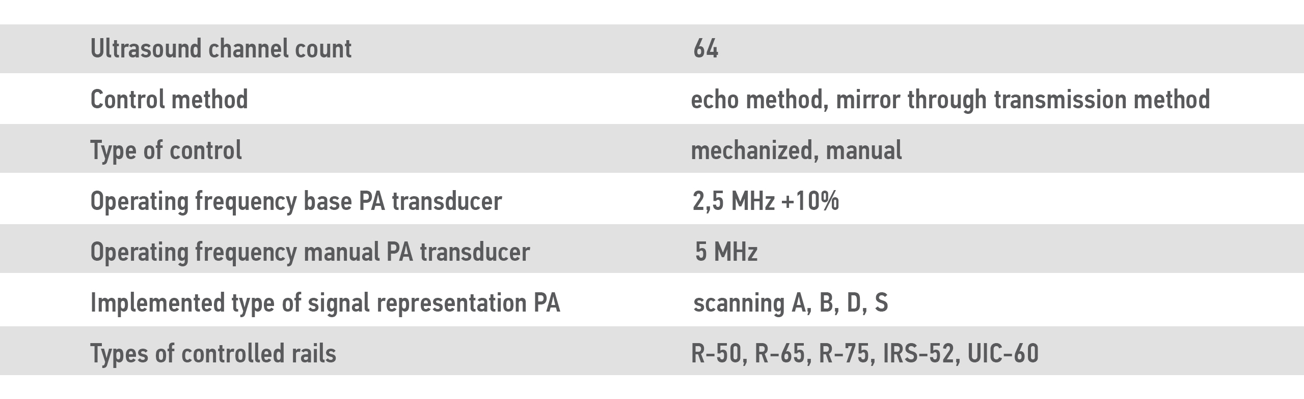 STATIONARY RAIL FLAW DETECTOR ON PHASED ARRAY (PA) FOR RAIL WELDING ENTERPRISE (RWE) Designed for acceptance ultrasonic inspection of welded joints of electric contact welding of railway rails in the conditions of rail welding enterprises.